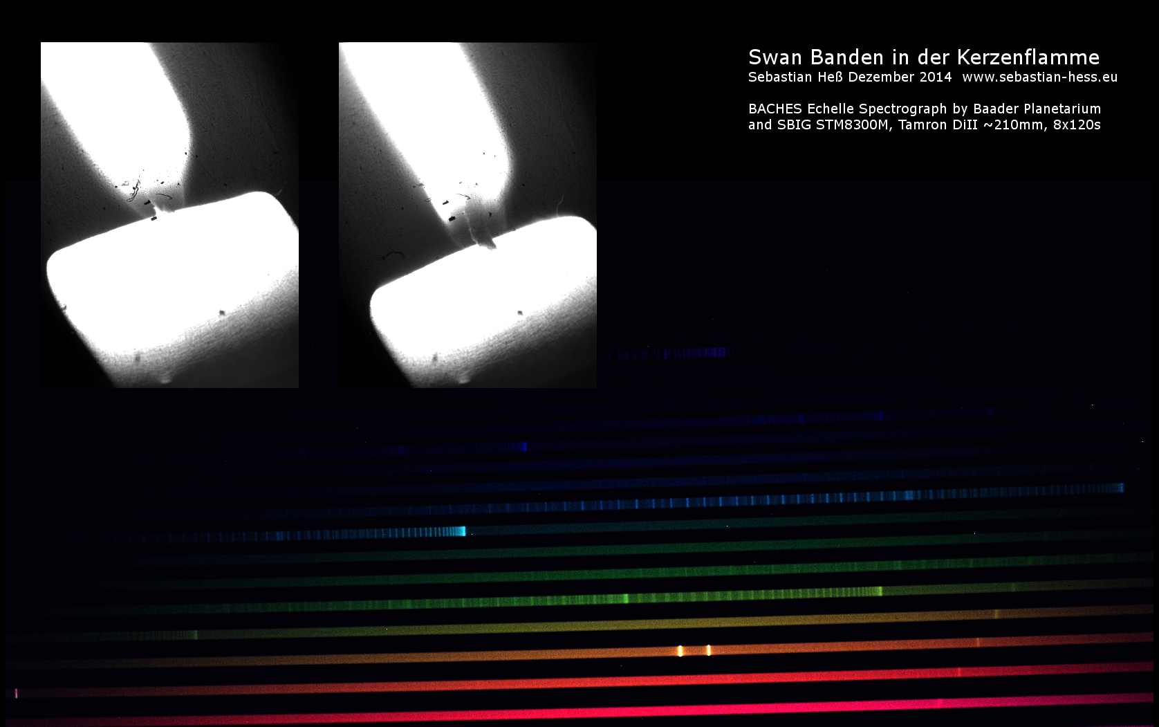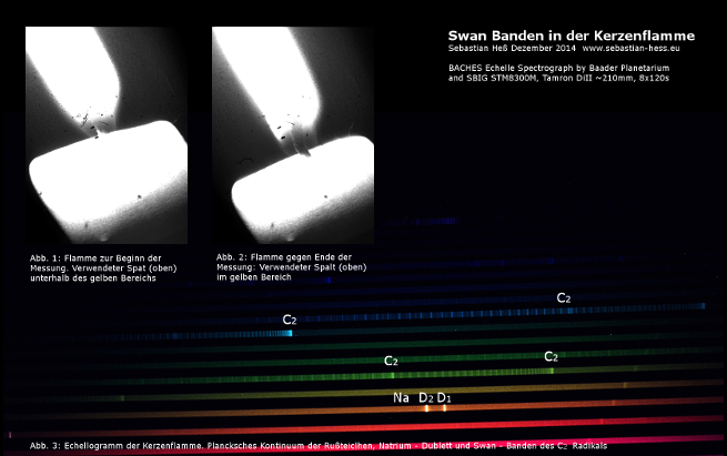 eignet sich der BACHES auch für Spektrographie terrestrischer Lichtquellen. Auf eine Kerzenflamme ausgerichtet